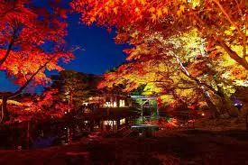 Một trải nghiệm độc đáo khác tại Kyoto là ngắm lá đỏ vào ban đêm (Yomiji). Chùa Eikando Zenrin-ji là “ông vua” của lá thu, nơi mà vẻ đẹp của thiên nhiên được tôn vinh bằng nghệ thuật chiếu sáng đỉnh cao. Hàng nghìn chiếc đèn được bố trí khéo léo, hắt lên những tán lá phong rực lửa, tạo nên một khung cảnh huyền ảo như chốn tiên cảnh.
